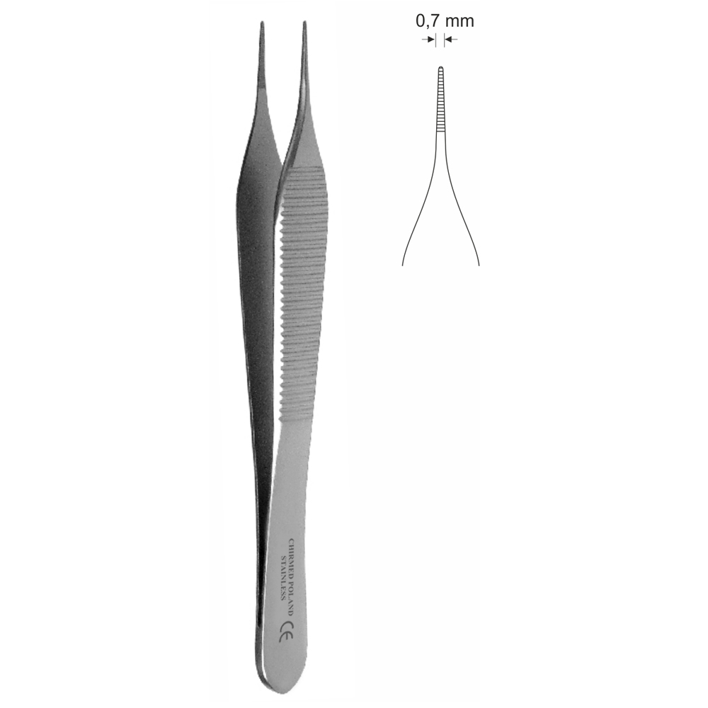 Pinceta mikrochirurgiczna, anatomiczna typu MIKRO-ADSON, dł. 120 mm, czubek 0,7 mm, prosta