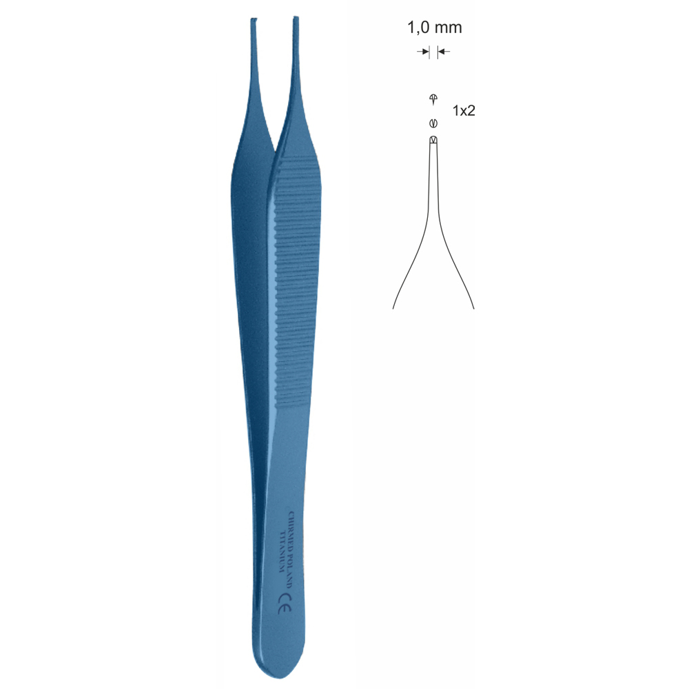 Pinceta mikrochirurgiczna typu MIKRO-ADSON, dł. 120 mm, czubek 0,8 mm, 1×2 ząbki, prosta, z tytanu