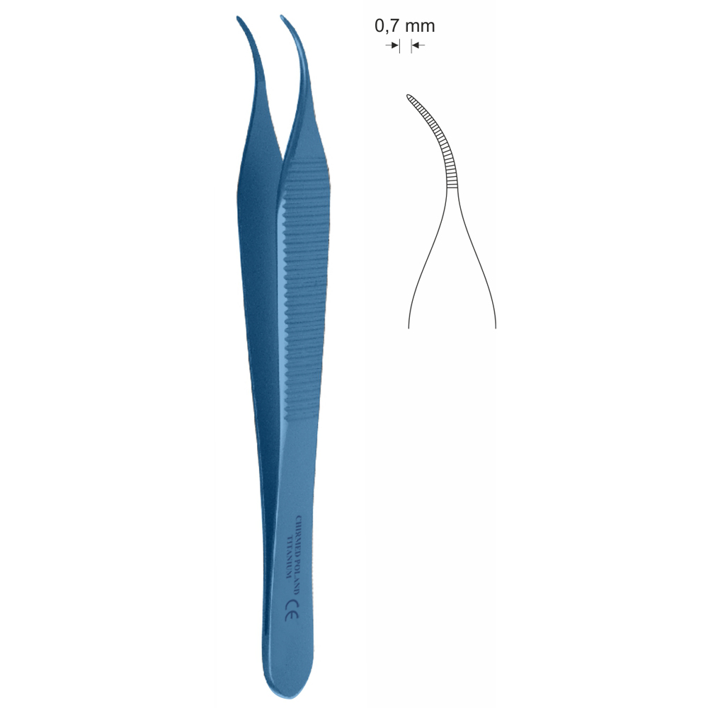 Pinceta mikrochirurgiczna, anatomiczna typu MIKRO-ADSON, dł. 120 mm, czubek 0,7 mm, odgięta, z tytanu