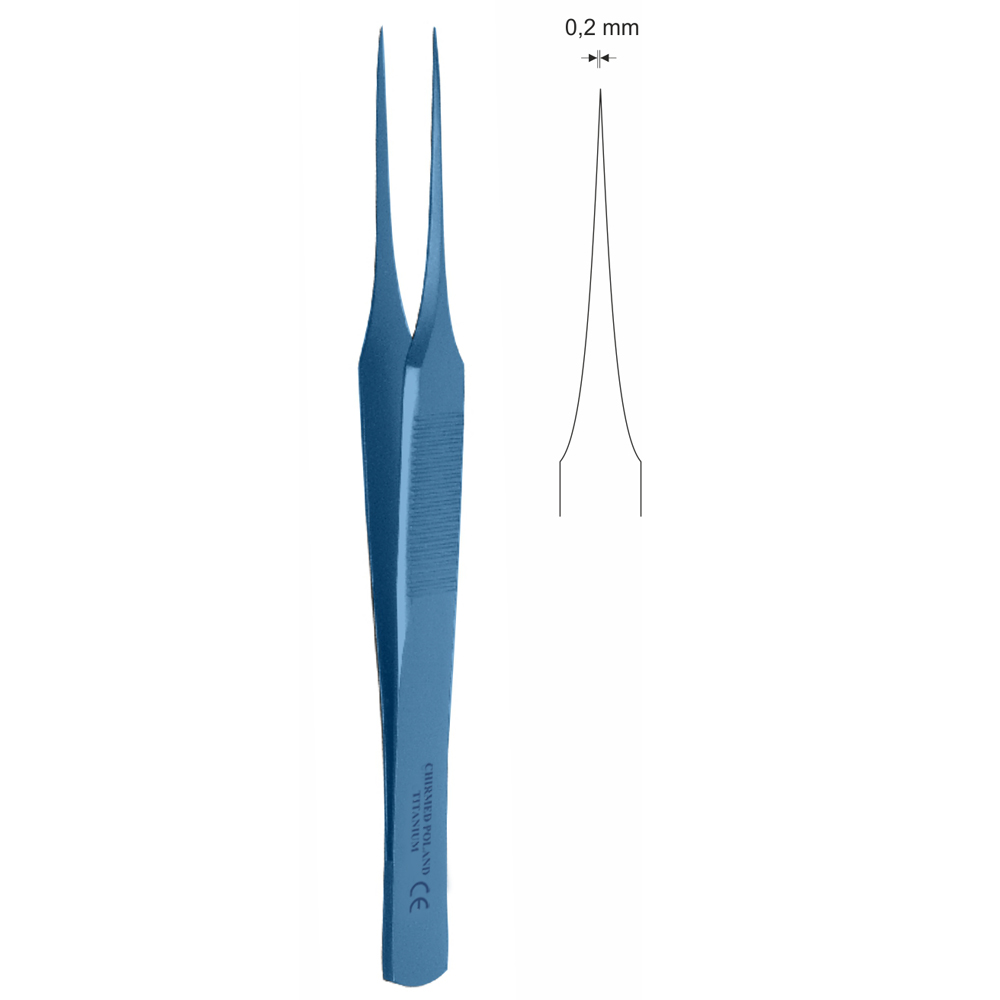 Pinceta mikrochirurgiczna bez nacięć i bez ząbków, model szwajcarski (jubilerski), dł. 110 mm, czubek 0,2 mm, prosta, z tytanu