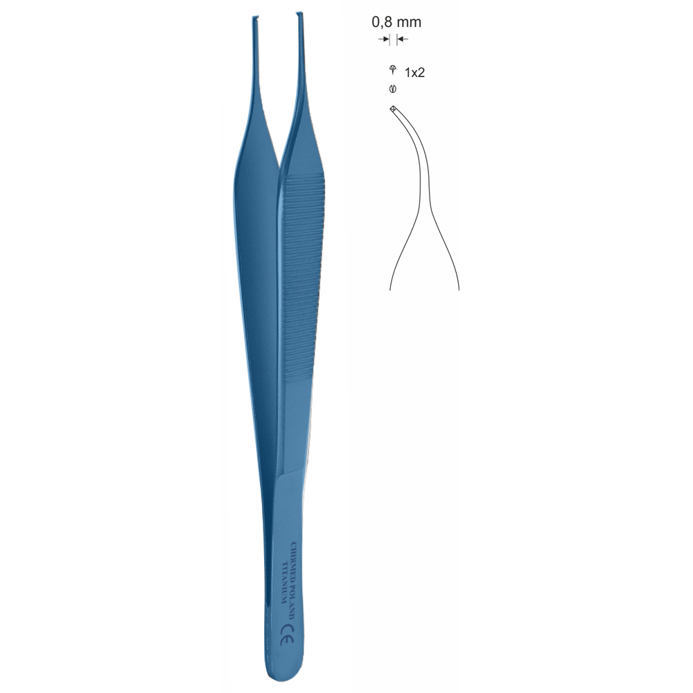 Pinceta mikrochirurgiczna, dł. 150 mm, czubek 0,8 mm, 1×2 ząbki, odgięta, z tytanu