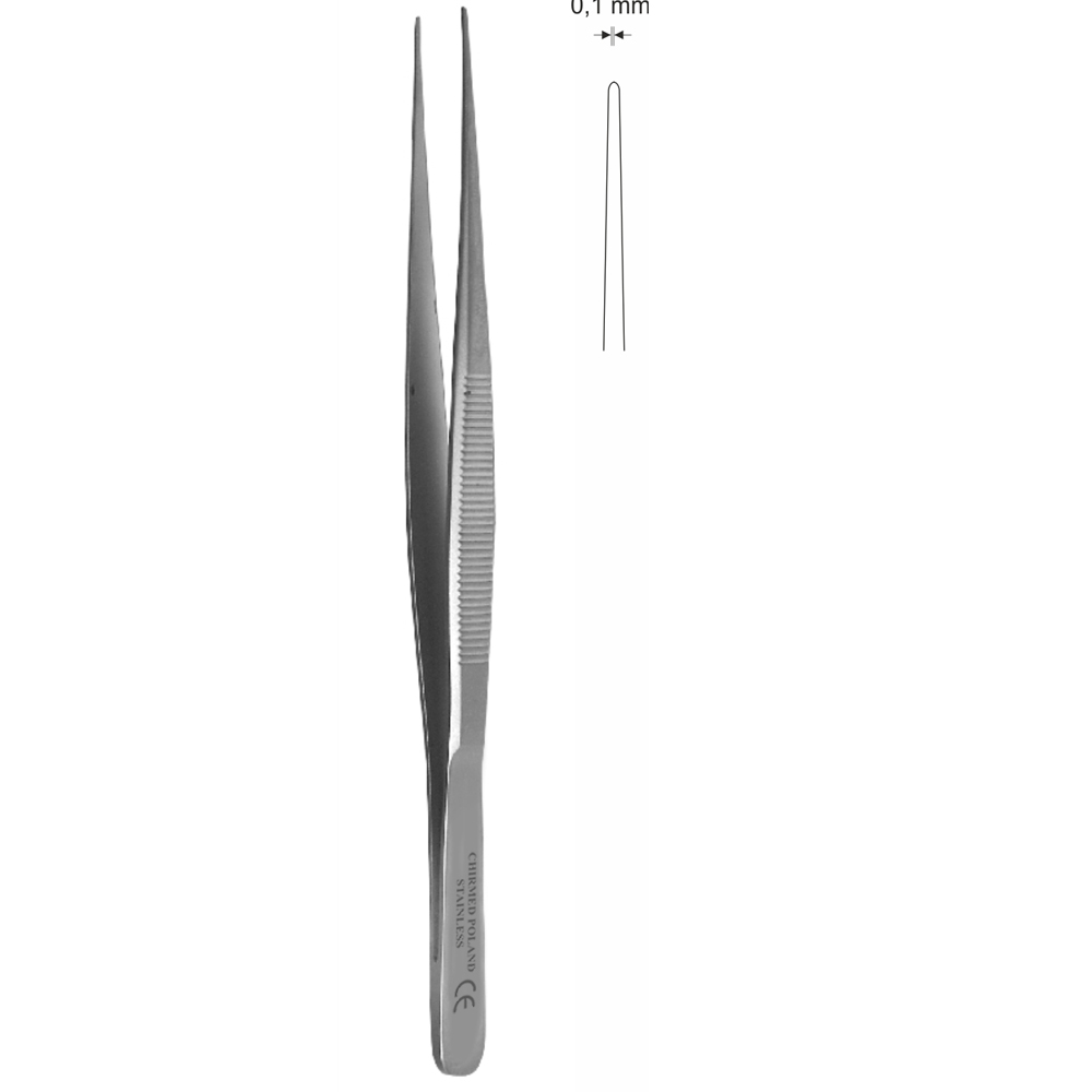 Pinceta delikatna anatomiczna, bez nacięć i bez ząbków, dł. 130 mm, czubek 1 mm, prosta