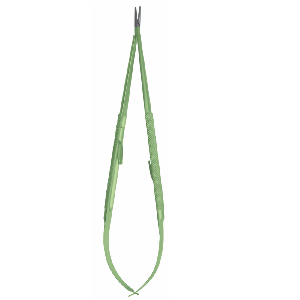 Igłotrzymacz mikrochirurgiczny z okrągłą rączką, z zamkiem, dł. 185 mm, kolor zielony, proste, z tytanu (część zestawu implantologicznego)