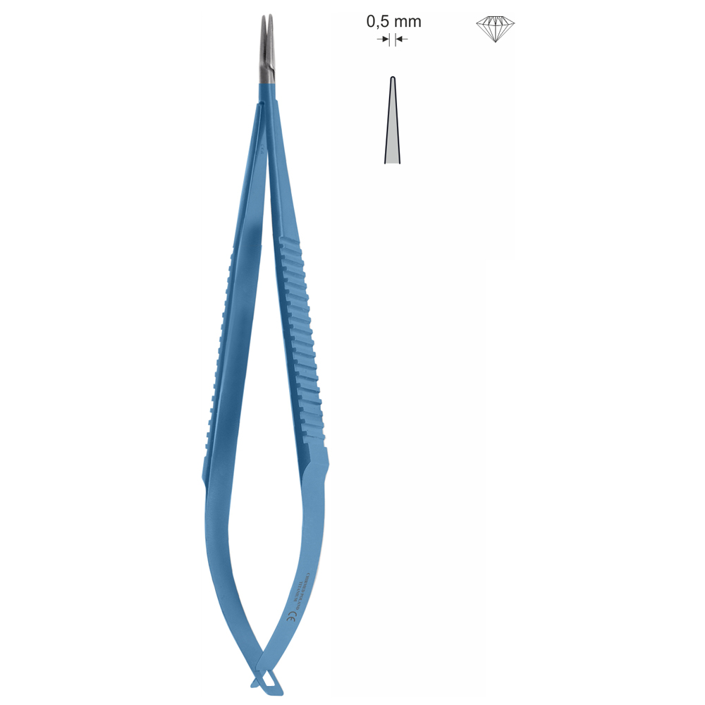 Igłotrzymacz mikrochirurgiczny typu CASTROVIEJO, dł. 150 mm, czubek 0,5 mm, z nasypem diamentowym, proste, z tytanu