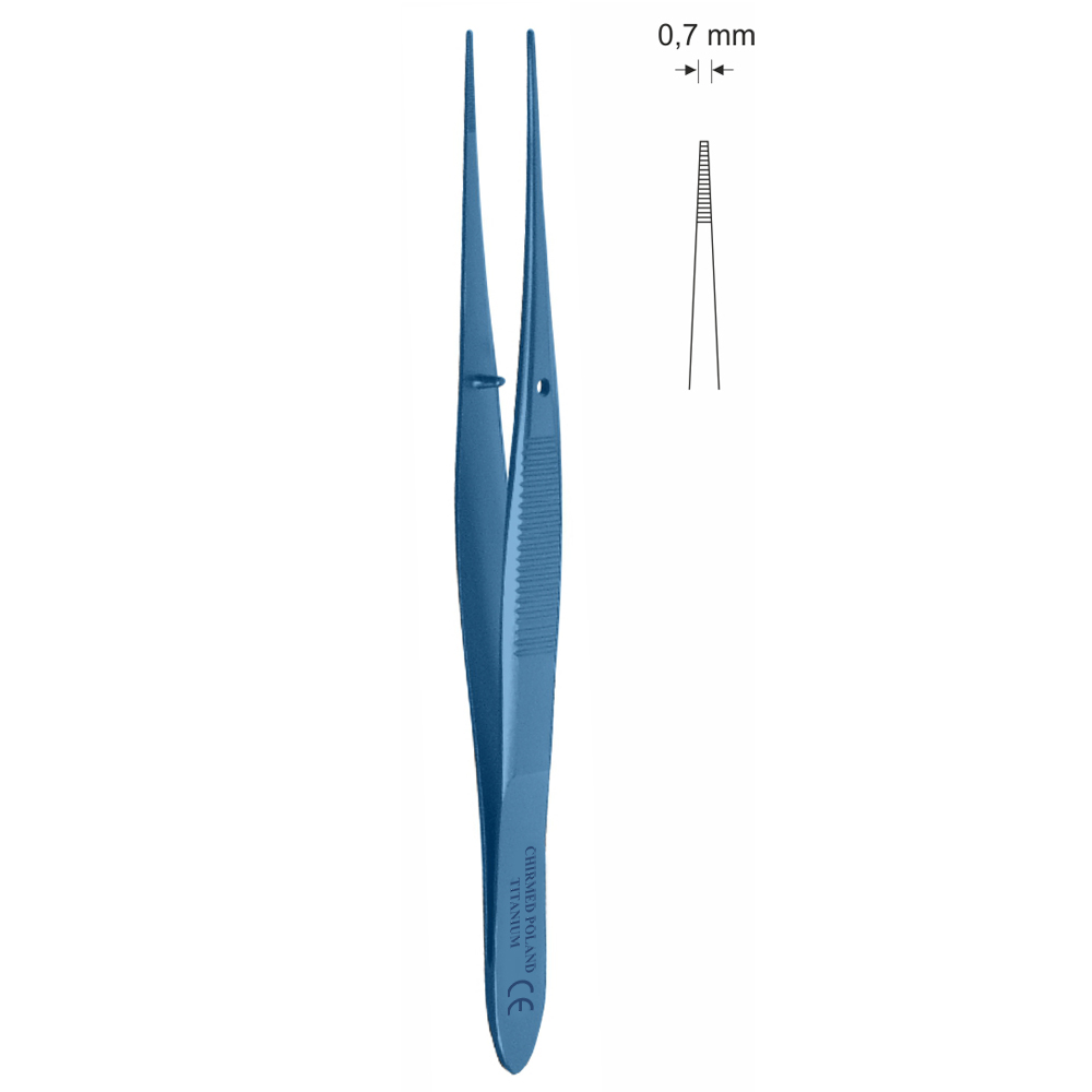 Pinceta do tęczówki, anatomiczna, dł. 100 mm, czubek 0,7 mm, prosta, z tytanu