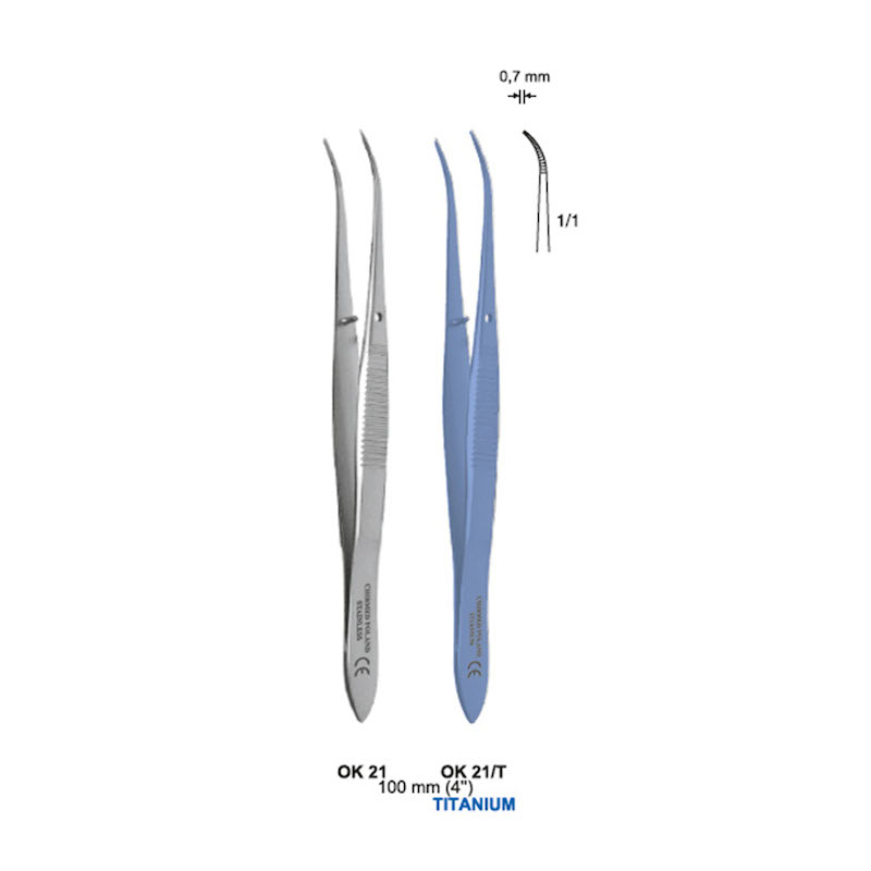 Pinceta do tęczówki, anatomiczna, dł. 100 mm, czubek 0,7 mm, lekko odgięta