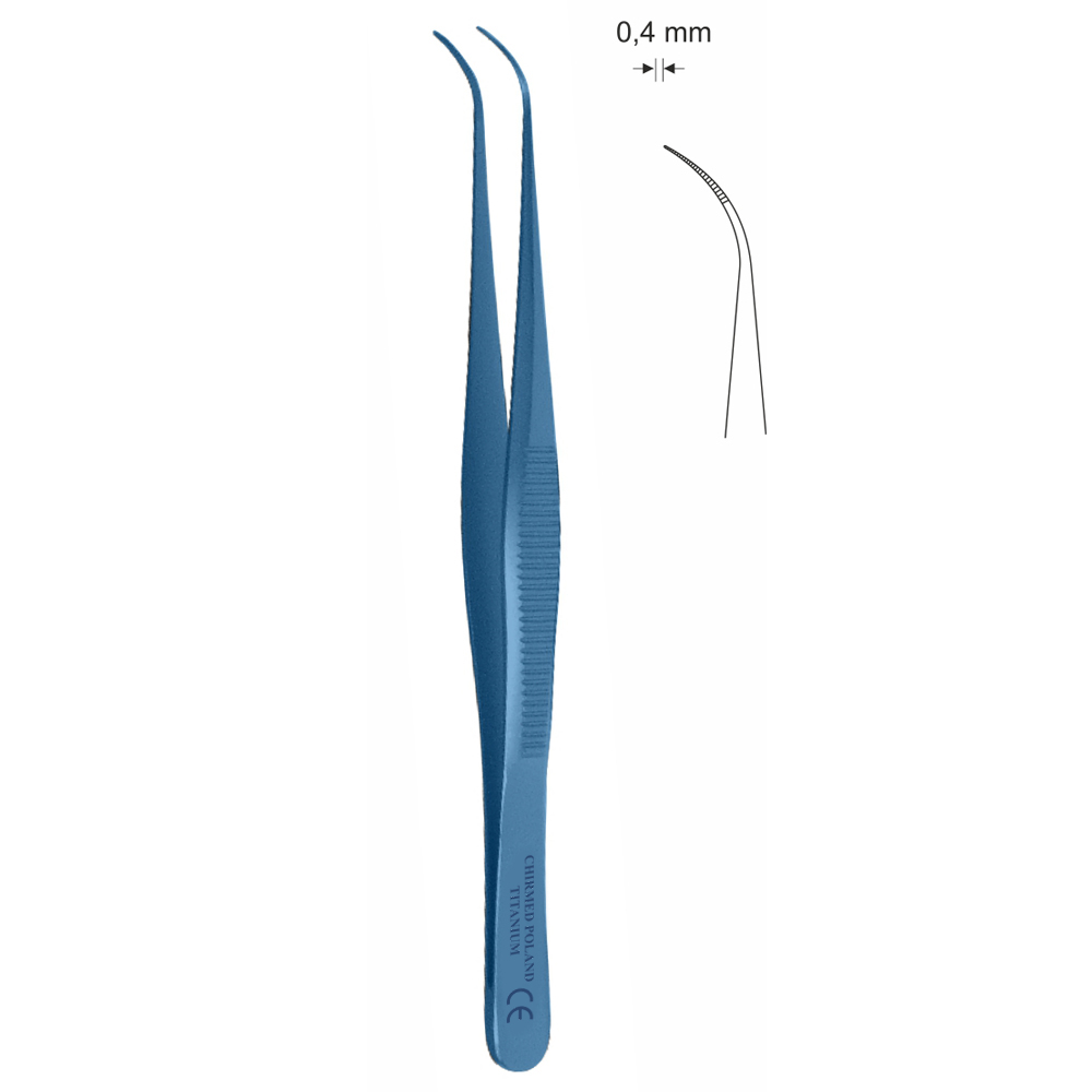 Pinceta okulistyczna, anatomiczna, dł. 100 mm, czubek 0,4 mm, odgięta, z tytanu