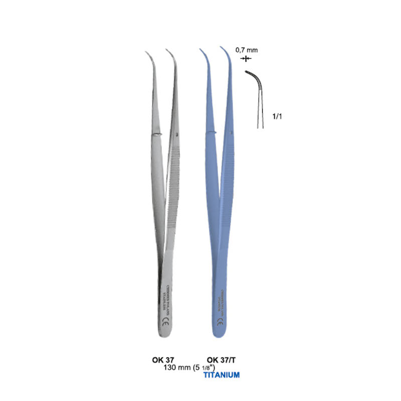 Pinceta okulistyczna, anatomiczna, dł. 130 mm, czubek 0,7 mm, odgięta