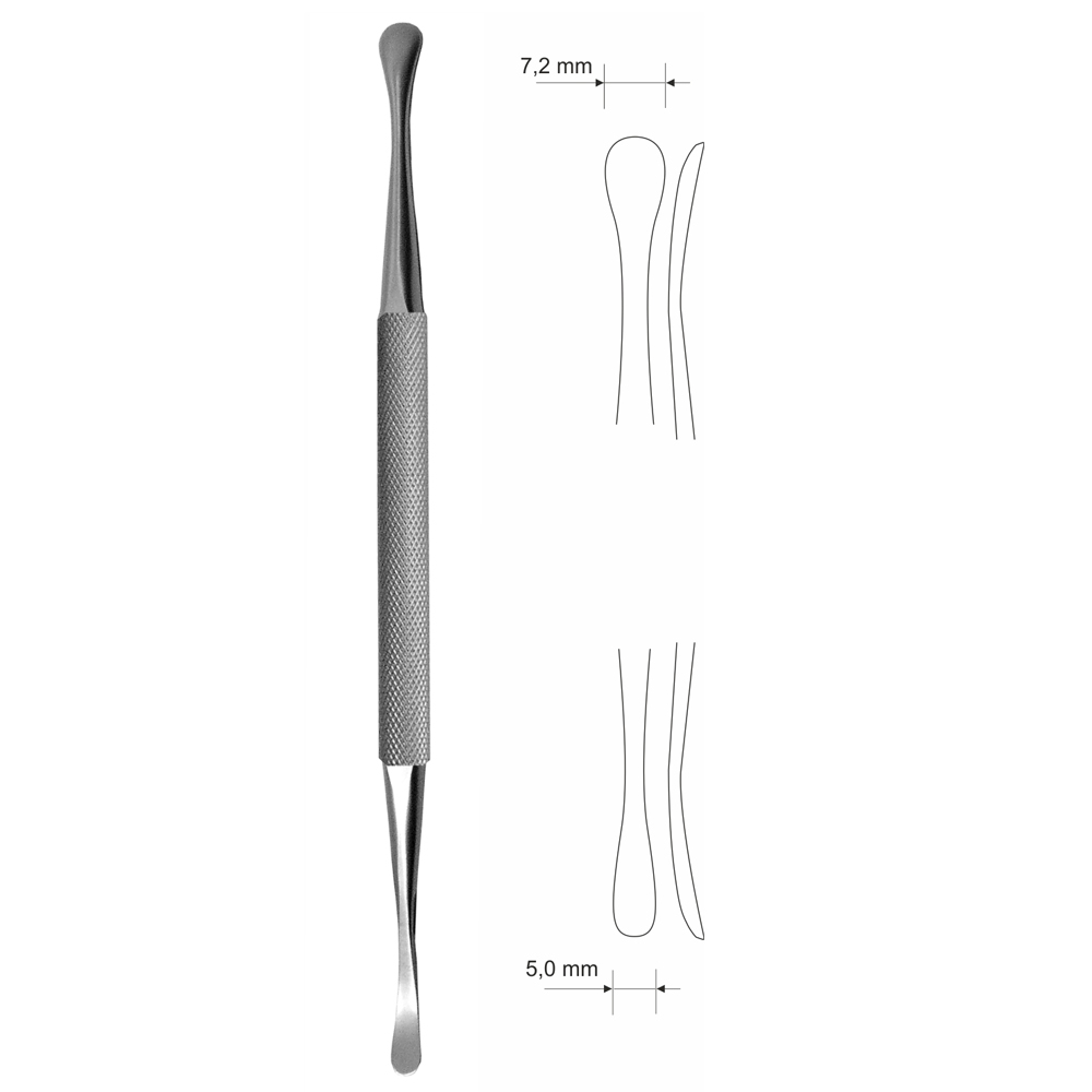 Raspator dwustronny, szeroki, okrągły uchwyt, dł. 174 mm, końcówki: 5 mm, 7,2 mm, prosty