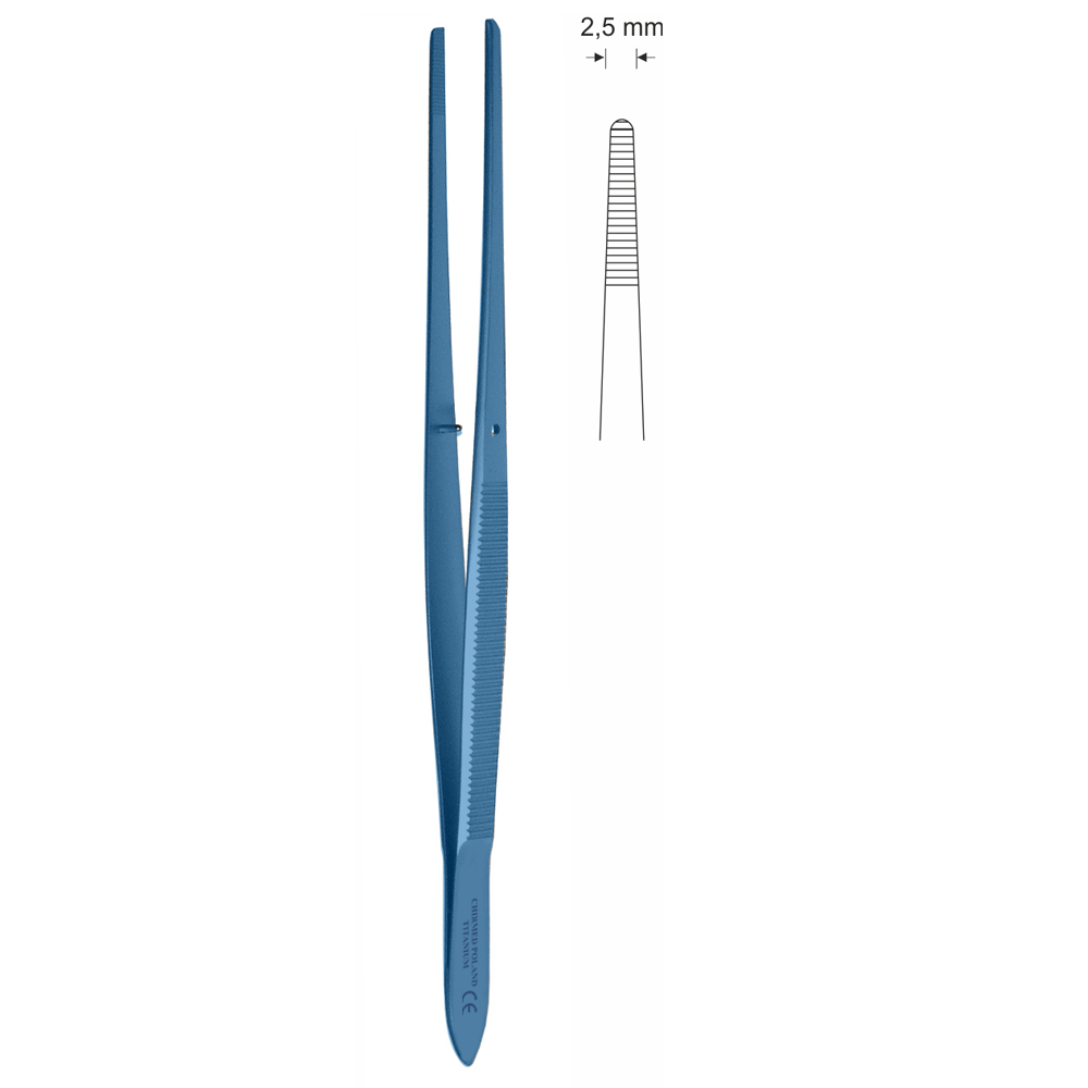 Pinceta stomatologiczna, anatomiczna, z kołkiem naprowadzającym, dł. 160 mm, czubek 2,5 mm, prosta, z tytanu
