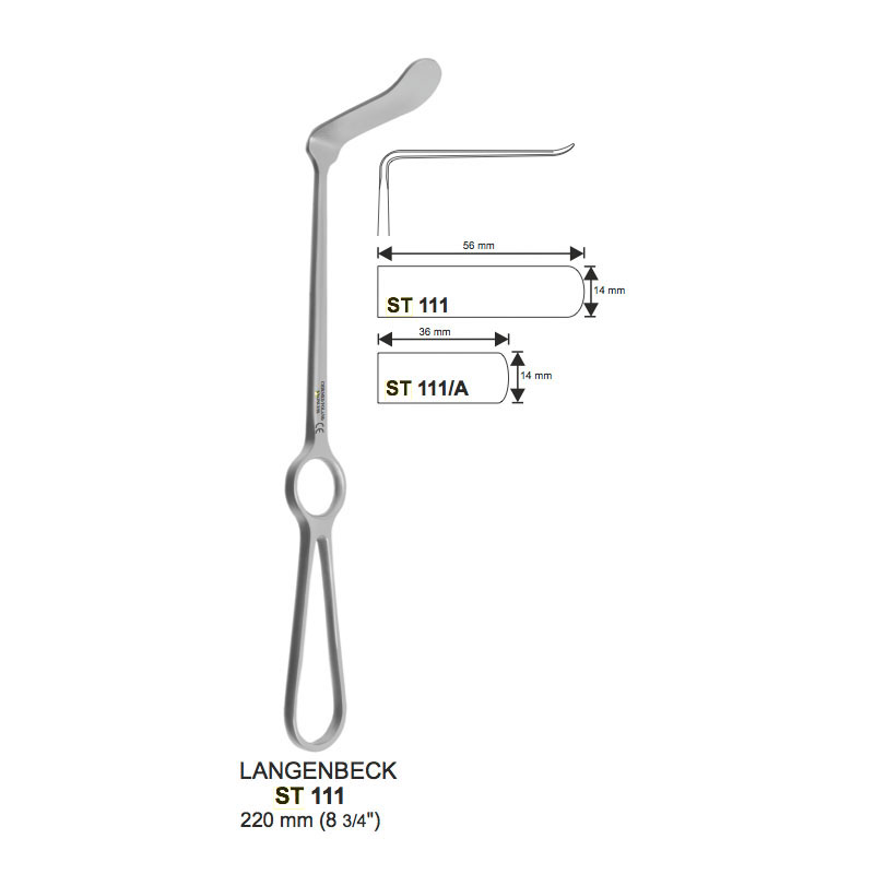 Hak typu LANGENBECK, dł. 220 mm, część robocza 14×56 mm, odgięty w górę