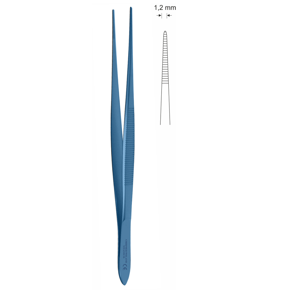 Pinceta stomatologiczna, anatomiczna, dł. 160 mm, czubek 1,2 mm, prosta, z tytanu