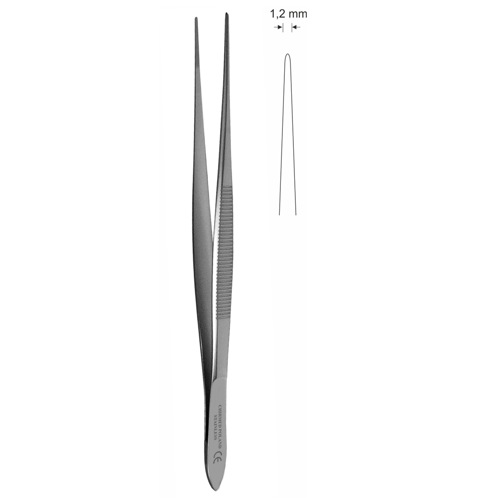 Pinceta stomatologiczna, anatomiczna, bez nacięć i bez ząbków, dł. 160 mm, czubek 1,2 mm, prosta