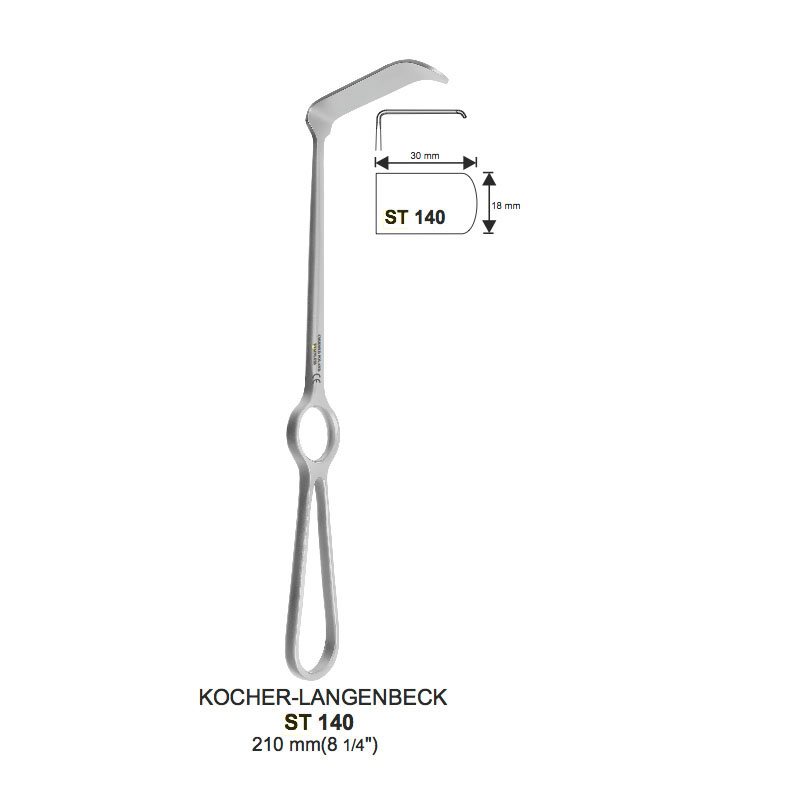 Hak typu LANGENBECK, dł. 210 mm, część robocza 18×30 mm, odgięty w dół
