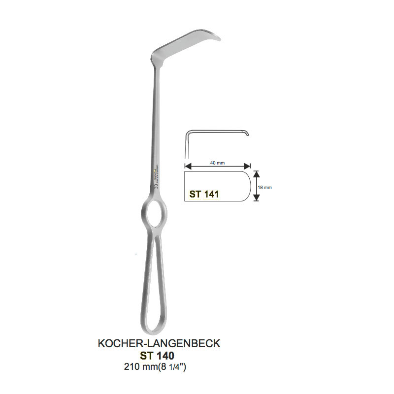 Hak typu LANGENBECK, dł. 210 mm, część robocza 18×40 mm, odgięty w dół