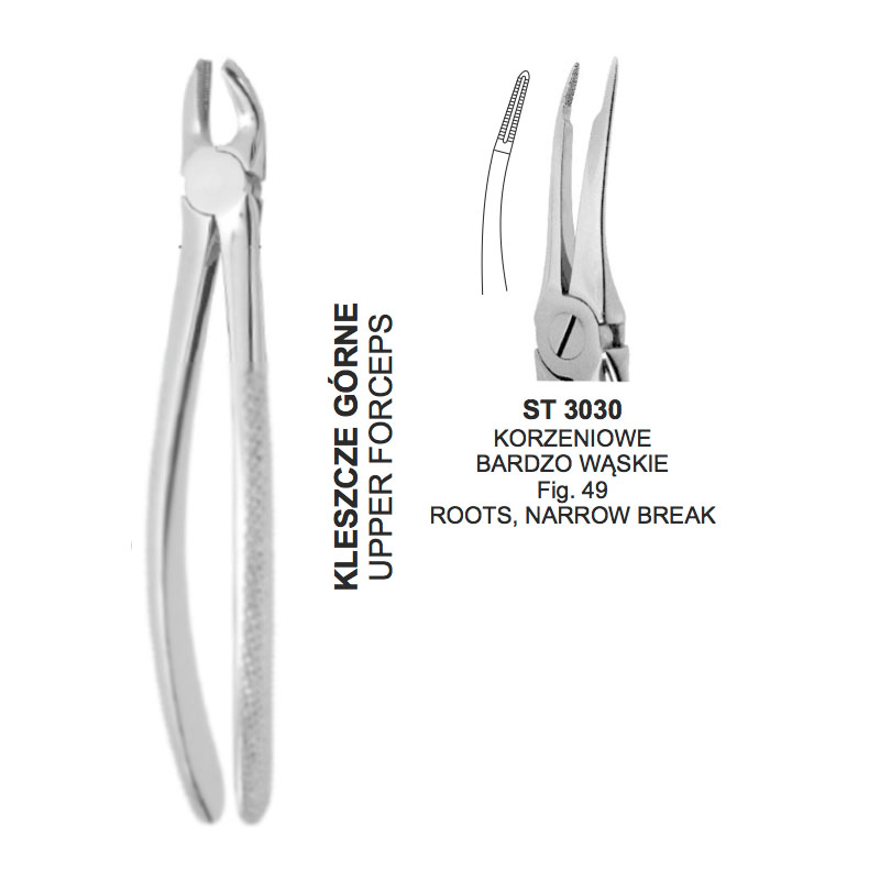 Kleszcze ekstrakcyjne, model angielski, do korzeni górnych, bardzo wąskie, Fig. 49
