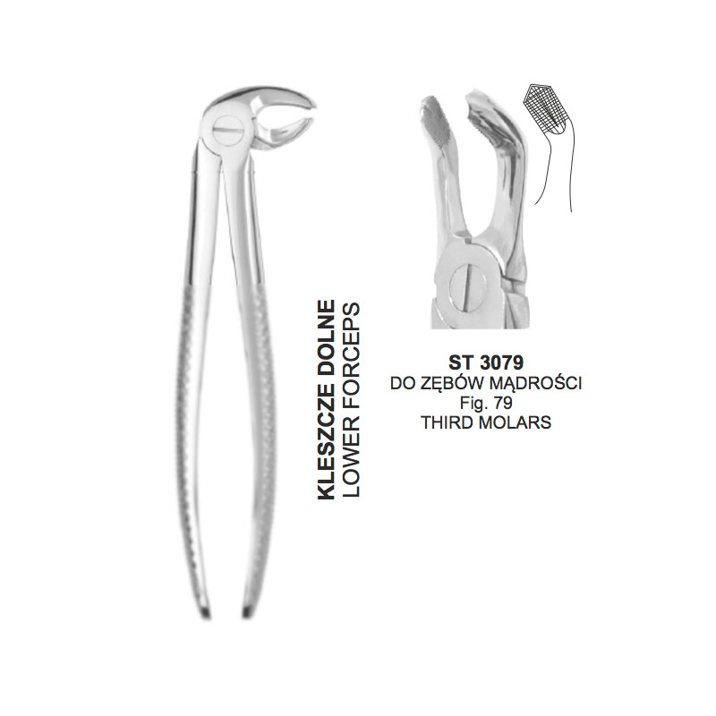 Kleszcze ekstrakcyjne, model angielski, do dolnych zębów mądrości, Fig.79