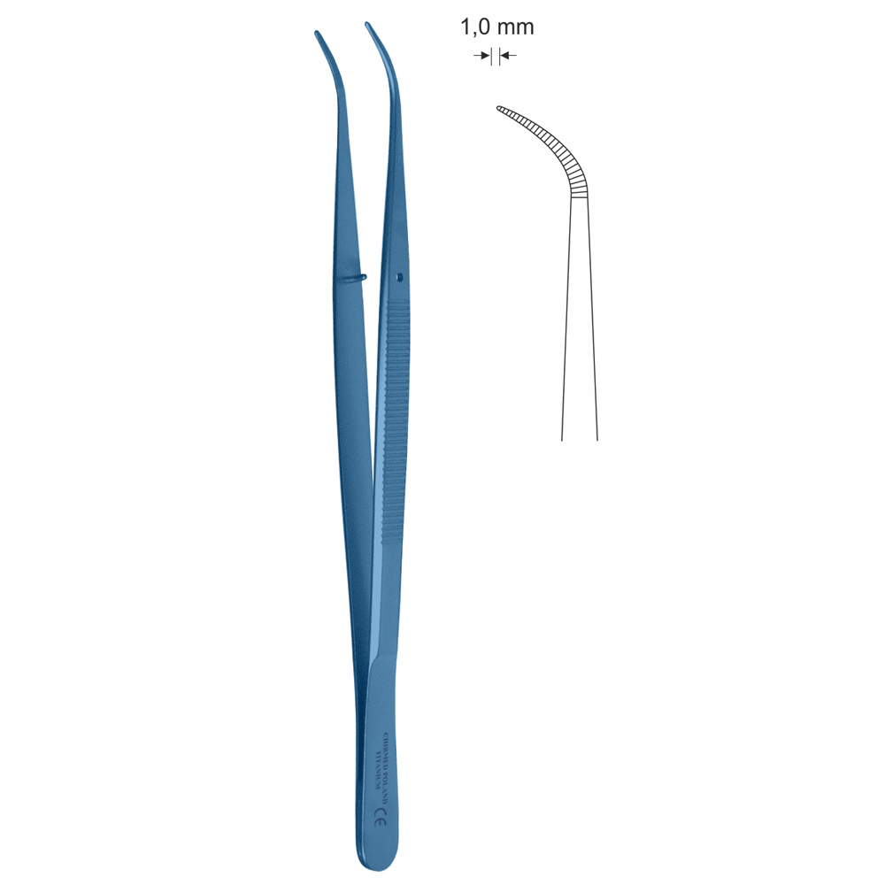 Pinceta stomatologiczna typu LONDON-COLLEGE, anatomiczna, z kołkiem naprowadzającym, dł. 150 mm, czubek 1 mm, odgięta, z tytanu