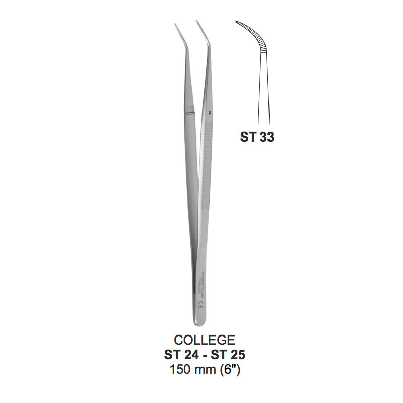 Pinceta stomatologiczna typu LONDON-COLLEGE, anatomiczna, z kołkiem naprowadzającym, dł. 150 mm, czubek 1 mm, odgięta