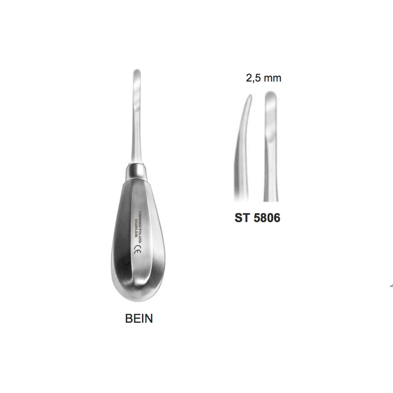 Dźwignia stomatologiczna płaska, z uchwytem typu BEIN, dł. 130 mm, szer. 2,5 mm, odgięta