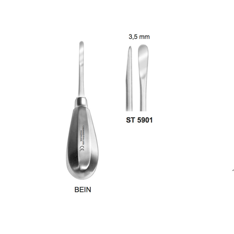 Dźwignia stomatologiczna płaska, z uchwytem typu BEIN, dł. 130 mm, szer. 3,5 mm, prosta