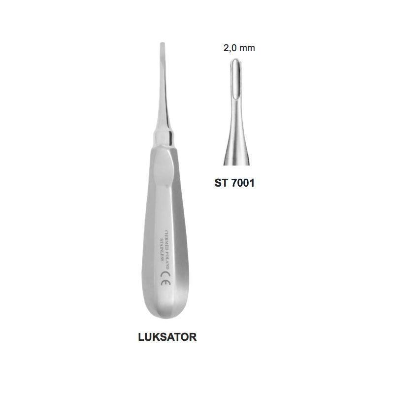 Dźwignia stomatologiczna zaokrąglona, do korzeni górnych, z uchwytem typu LUKSATOR, dł. 155 mm, szer. 2 mm, Fig.1, prosta