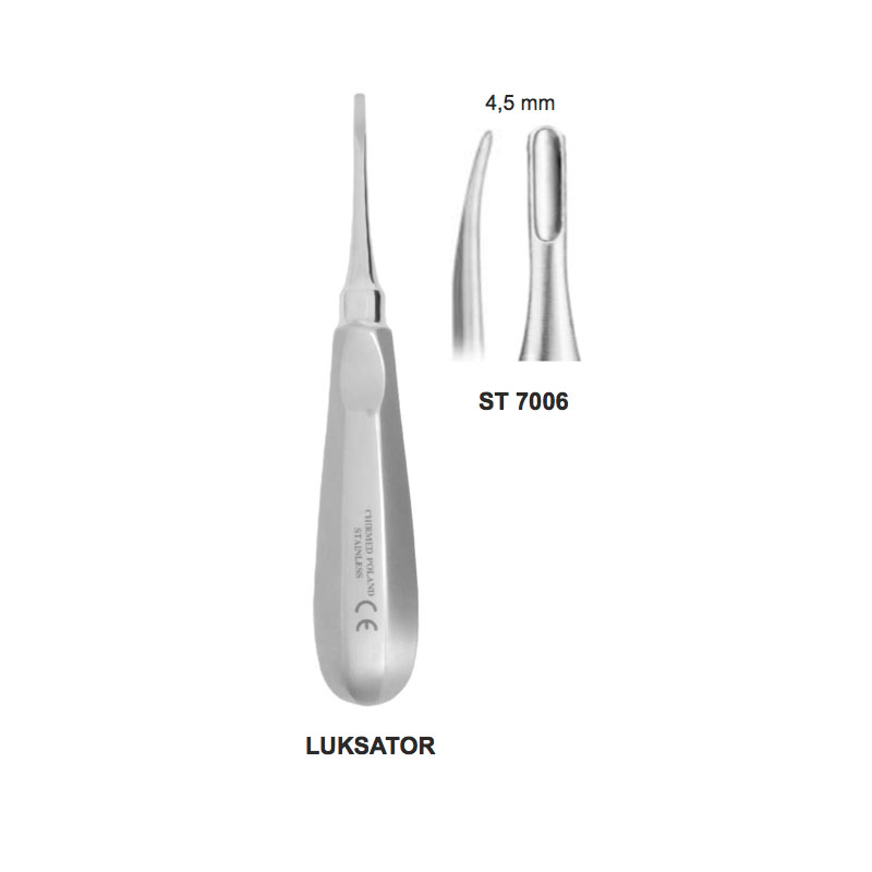 Dźwignia stomatologiczna zaokrąglona, do korzeni górnych, z uchwytem typu LUKSATOR, dł. 155 mm, szer. 4,5 mm, Fig. 3, odgięta
