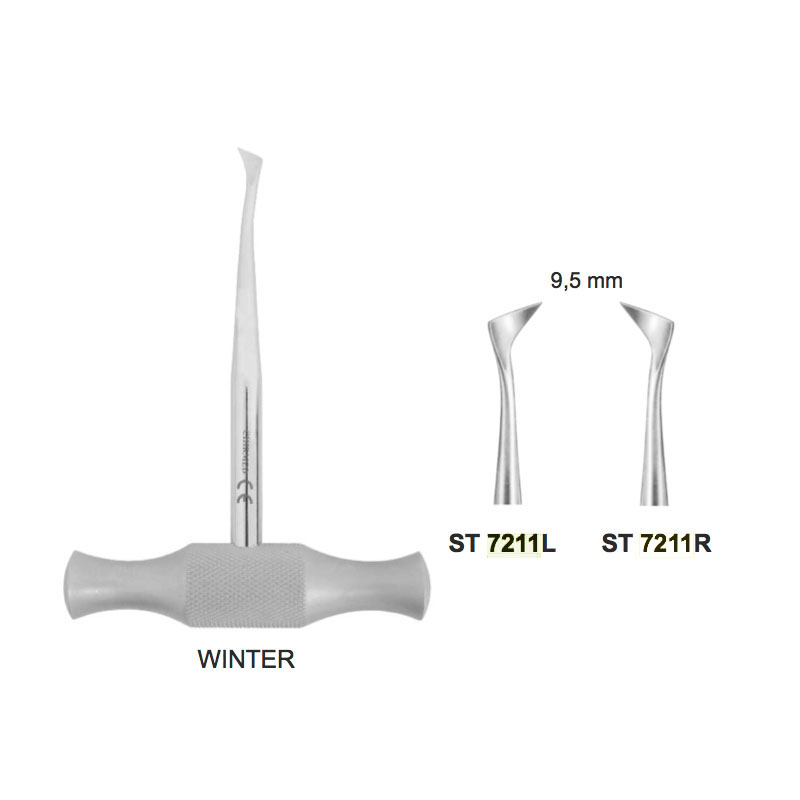 Dźwignia stomatologiczna typu WINTER, do korzeni dolnych, dł. 130 mm, szer. 9,5 mm, prawa