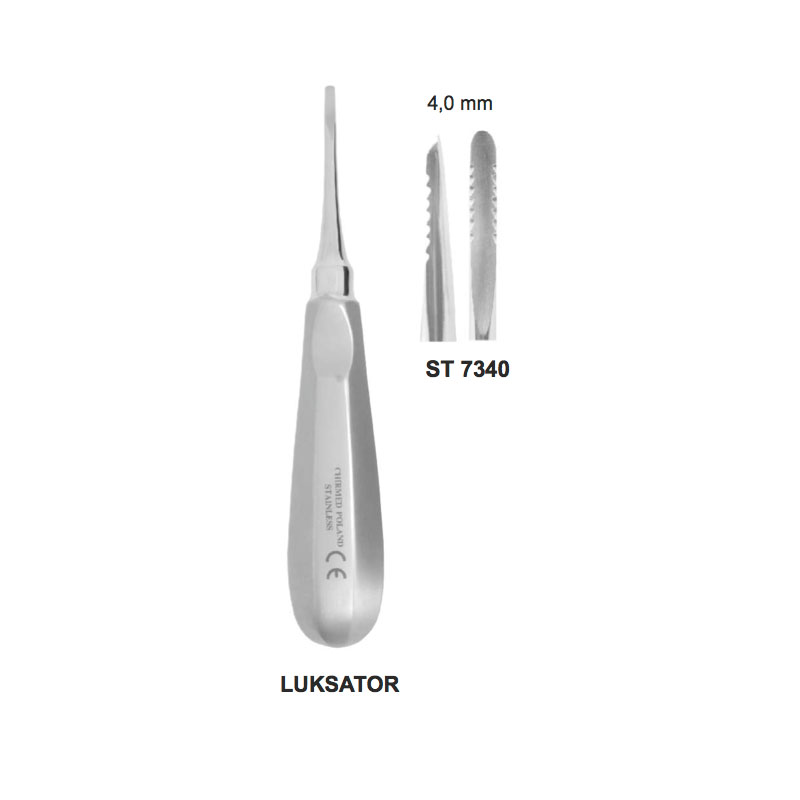 Dźwignia stomatologiczna typu ZA BECK, z ząbkami, z uchwytem typu LUKSATOR, dł. 155 mm, szer. 3,5 mm, prosta