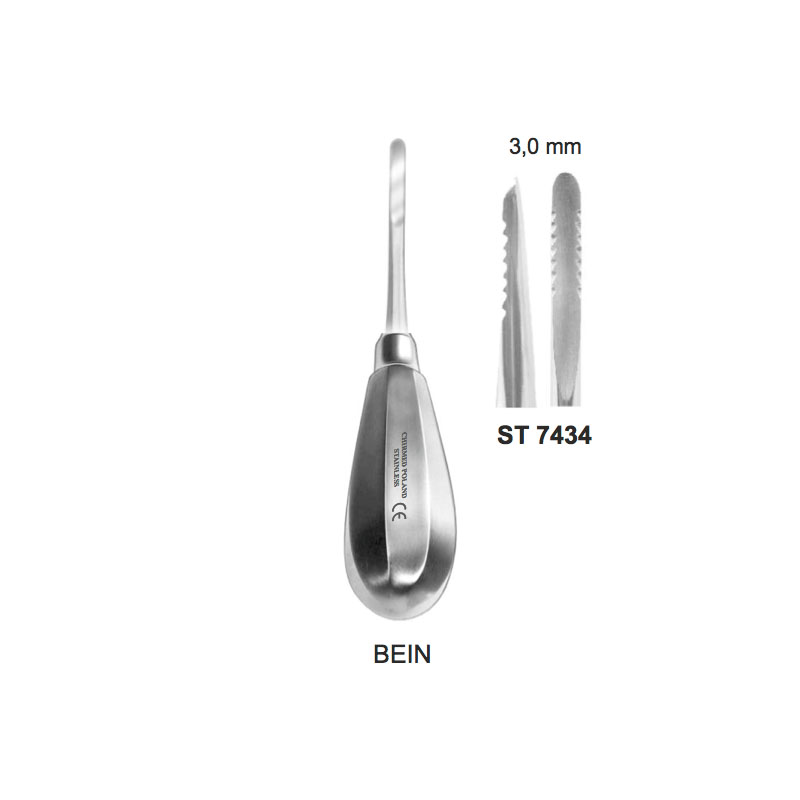 Dźwignia stomatologiczna typu ZA BECK, z ząbkami, z uchwytem typu BEIN, dł. 130 mm, szer. 3 mm