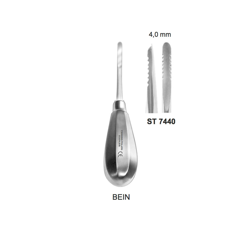 Dźwignia stomatologiczna typu ZA BECK, z ząbkami, z uchwytem typu BEIN, dł. 130 mm, szer. 4,5 mm