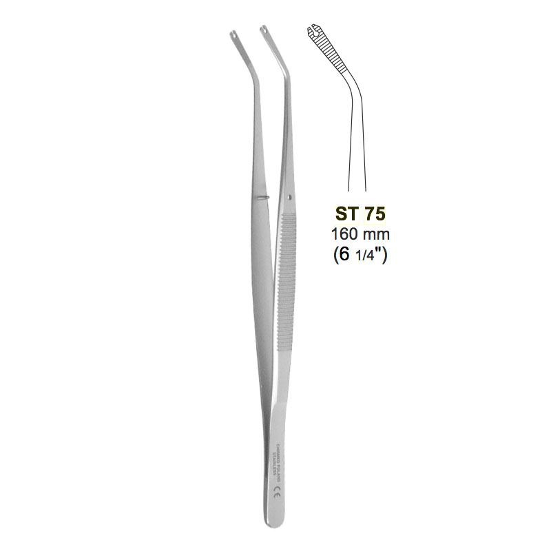 Pinceta stomatologiczna do ligatury, z kołkiem naprowadzającym, dł. 160 mm, czubek 3 mm, odgięta